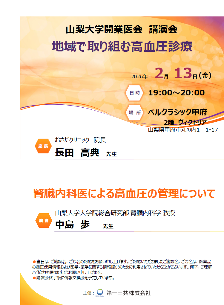 演題:「腎臓内科医による高血圧の管理について」